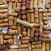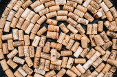 Miasto Sibiu, Rumunia - 02 lutego 2020. Stare używane korki z różnych krajów produkujących wino