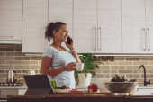 Zdjęcie "uśmiechnięta bizneswoman w marynarce nad piżamą gotowanie i rozmowy na smartfonie w kuchni" może być wykorzystywane do celów osobistych i komercyjnych zgodnie z warunkami zakupionej licencji Royalty-free. Obraz jest dostępny do pobrania w jakości wysokiej rozdzielczości do 5760x3840.