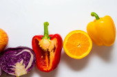Różne beta karoten świeże owoce i warzywa na białym tle widok z góry