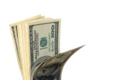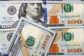 Wentylator amerykańskich dolarów na białym tle, odizolowany, 100 banknotów