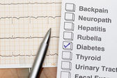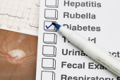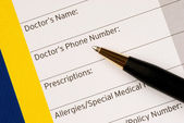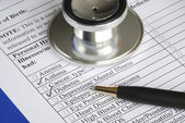 wypełnienie kwestionariusza wywiadu, na niebieskim tle
