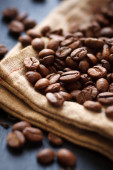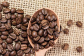 świeże ziarna kawy na tle drewna