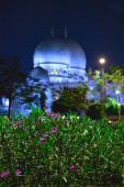Zdjęcie "Wspaniały widok na Wielki Meczet Szejka Zayeda w Abu Zabi przed wschodem słońca. Największy meczet w kraju, jest kluczowym miejscem kultu codziennej modlitwy." może być wykorzystywane do celów osobistych i komercyjnych zgodnie z warunkami zakupionej licencji Royalty-free. Obraz jest dostępny do pobrania w jakości wysokiej rozdzielczości do 5760x3840.