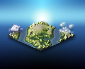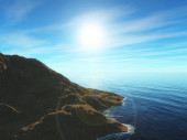 3D renderowanie tropikalnej wyspy z palmami i czystym błękitnym morzem