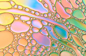 Kolorowe krople oleju na powierzchni wody z kolorową kombinacją