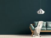 Wnętrze salonu. 3d renderowania sofa stół lampa tło drewno podłoga drewniana ściana szablon projekt tekstury