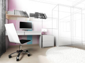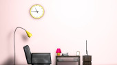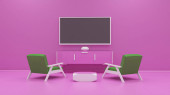 Wnętrze salonu. 3d renderowania sofa stół lampa tło drewno podłoga drewniana ściana szablon projekt tekstury