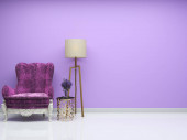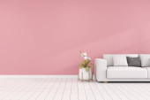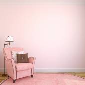 Wnętrze salonu. 3d renderowania sofa stół lampa tło drewno podłoga drewniany różowy ściana szablon projekt tekstury