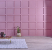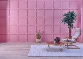 Wnętrze salonu. 3d renderowania sofa stół lampa tło drewno podłoga drewniany różowy ściana szablon projekt tekstury