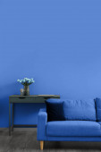 Wnętrze salonu. 3d renderowania sofa stół lampa tło drewno podłoga drewniana ściana szablon projekt tekstury