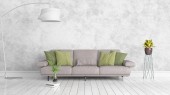 Wnętrze salonu. 3d renderowania sofa stół lampa tło drewno podłoga drewniana ściana szablon projekt tekstury