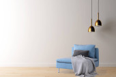 Wnętrze salonu. 3d renderowania sofa stół lampa tło drewno podłoga drewniana ściana szablon projekt tekstury