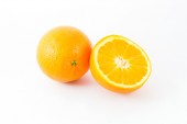 Świeże plasterki pomarańczowego owoców tropikalnych na białym tle, Witamina owoców