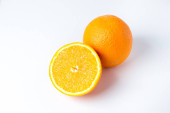 Świeże plasterki pomarańczowego owoców tropikalnych na białym tle, Witamina owoców