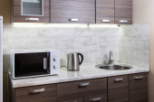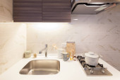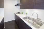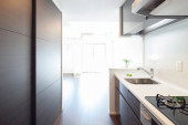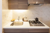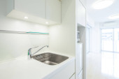 Jasna i czysta kuchnia w białym tonacji pokój