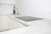 Jasna i czysta kuchnia w białym tonacji pokój