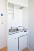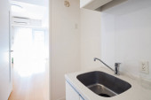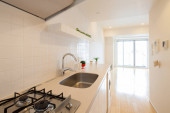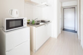 Jasna i czysta kuchnia w białym tonacji pokój