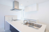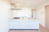 Jasna i czysta kuchnia w białym tonacji pokój