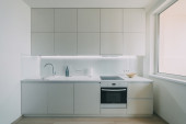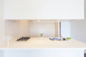 Jasna i czysta kuchnia w białym tonacji pokój