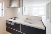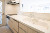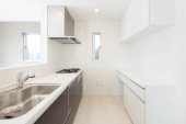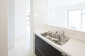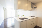 Jasna i czysta kuchnia w białym tonacji pokój
