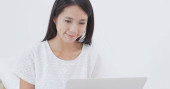 azjatyckie kobiety nauki poprzez cyfrowy tablicowy