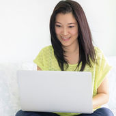 azjatyckie kobiety za pomocą komputera w domu