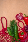 eko wegańskie warzywa spożywcze w papierowej torbie na stole płasko przestrzeń kopia
