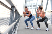 Fitness długie ciemne włosy dziewczyna ćwiczenia w pobliżu rzeki