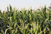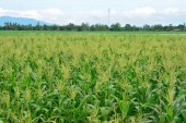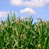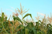 Zbliżenie grupy Corn Garden ma niebieskie tło nieba.