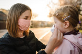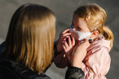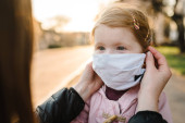 Zdjęcie "Koronawirus koncept końcowy. Koniec z covid-19. Dziewczynko, matka nosi maski spacerując po ulicy. Mama zdejmuje maskę szczęśliwego dziecka. Rodzina z dzieckiem na zewnątrz. świętowanie sukcesu. Pandemia się skończyła.." może być wykorzystywane do celów osobistych i komercyjnych zgodnie z warunkami zakupionej licencji Royalty-free. Obraz jest dostępny do pobrania w jakości wysokiej rozdzielczości do 5760x3840.