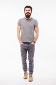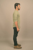 Studio strzał przystojny brodaty Perski mężczyzna na czarnym tle