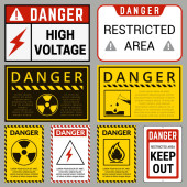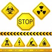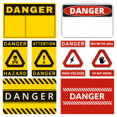 Ostrożnie. Czyste etykiety bezpieczeństwa z możliwością zastąpienia tekstu, którego potrzebujesz. Różne banery ochronne emodimentów. Ilustracja wektora