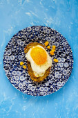 pyszne makarony carbonara serwowane ze złotymi sztućcami, solniczkami i pieprzem na kamiennym stole w słońcu
