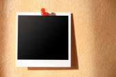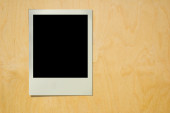 Pusta polaroidalna ramka fotograficzna z miękkimi cieniami i taśmą magnetyczną izolowana na szarym papierowym tle jako szablon dla grafików prezentacje, portfele itp. Dzieciaki. płyta magnetyczna.