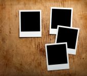 Pusta polaroidalna ramka fotograficzna z miękkimi cieniami i taśmą magnetyczną izolowana na szarym papierowym tle jako szablon dla grafików prezentacje, portfele itp. Dzieciaki. płyta magnetyczna.