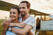 Zdjęcie "Radosna, piękna, kochająca się młoda para stojąca na zewnątrz." może być wykorzystywane do celów osobistych i komercyjnych zgodnie z warunkami zakupionej licencji Royalty-free. Obraz jest dostępny do pobrania w jakości wysokiej rozdzielczości do 5760x3840.