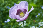 Papaver somniferum ziarno maku opium roślina z dużymi ciemnoczerwonymi i różowymi kwiatami z długimi zielonymi łodygami flash oświetlenia