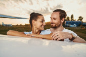 Dwoje uśmiechniętych, atrakcyjnych romantyków relaksujących się na świeżym powietrzu