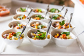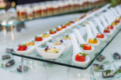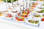 przystawki z asortymentu ryb i warzyw oraz karma palcowa