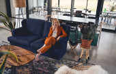 Zdjęcie "Uśmiechnięta kobieta je lunch na kanapie" może być wykorzystywane do celów osobistych i komercyjnych zgodnie z warunkami zakupionej licencji Royalty-free. Obraz jest dostępny do pobrania w jakości wysokiej rozdzielczości do 5760x3840.