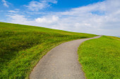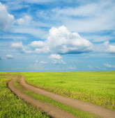 brudny drogi w zielonej trawie pod pochmurnego nieba