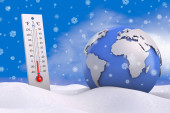 poniżej zera. termometr zimny, minus temperatury zimą zimno