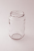 pusty przezroczysty plastikowy słoik na białym tle