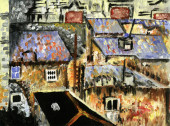 Surowy szkic obszaru miejskiego, akryl na papierze.