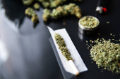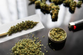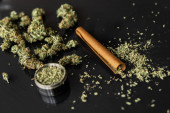 Zdjęcie "Blunt i Zapalniczki. Zamknij drzwi. Pąki konopi w ręku na czarnym tle Tło dla miejsca Kopiuj. CBD i THC na pączkach konopi indyjskich. Młynek do ziół Świeża marihuana." może być wykorzystywane do celów osobistych i komercyjnych zgodnie z warunkami zakupionej licencji Royalty-free. Obraz jest dostępny do pobrania w jakości wysokiej rozdzielczości do 5760x3840.