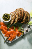 Składniki kanapki z łososiem na białym tle. Widok z góry
