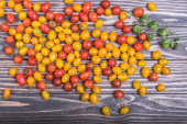 Globus owinięty taśmą pomiarową. Obok kupy pomidorów. Na szczotkowanych sosnowych deskach. Symbol Światowego Dnia bez Dietetyki.
