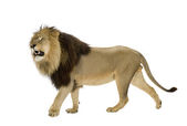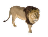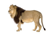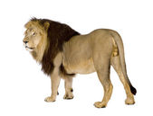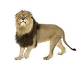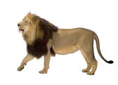 widok z boku stały lew, ryk, panthera leo, ol 10 lat