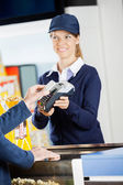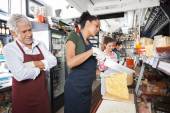 pewnie rzeźnik mężczyzna stojący ręce skrzyżowane w sklepie