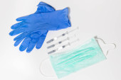 rękawice nitrylowe z maską chirurgiczną i termometrem na białym tle